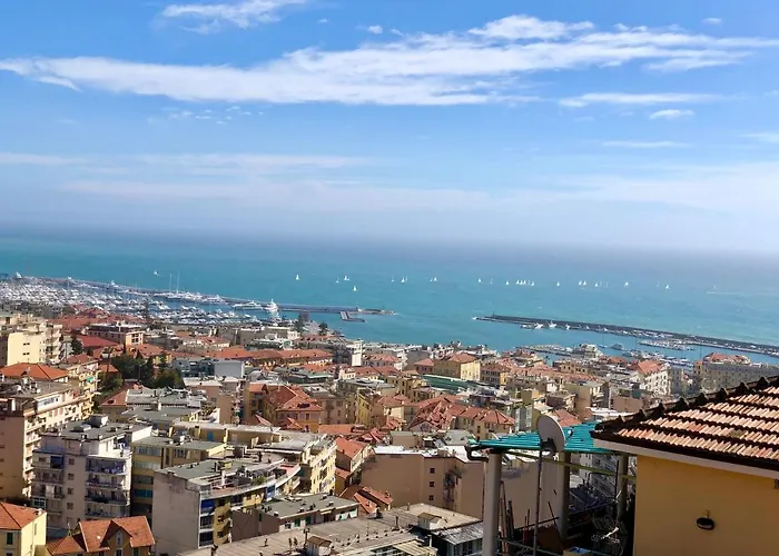 Casa Sandra - Sanremo Sea View, With Garage设有设施齐全的厨房和配阳台,休息区 和卫星电视的客房. 住所距离香格里拉·皮尼亚很近,仅有0.7公里的距离.圣雷莫赌场也在附近,距离公寓有0.8公里.